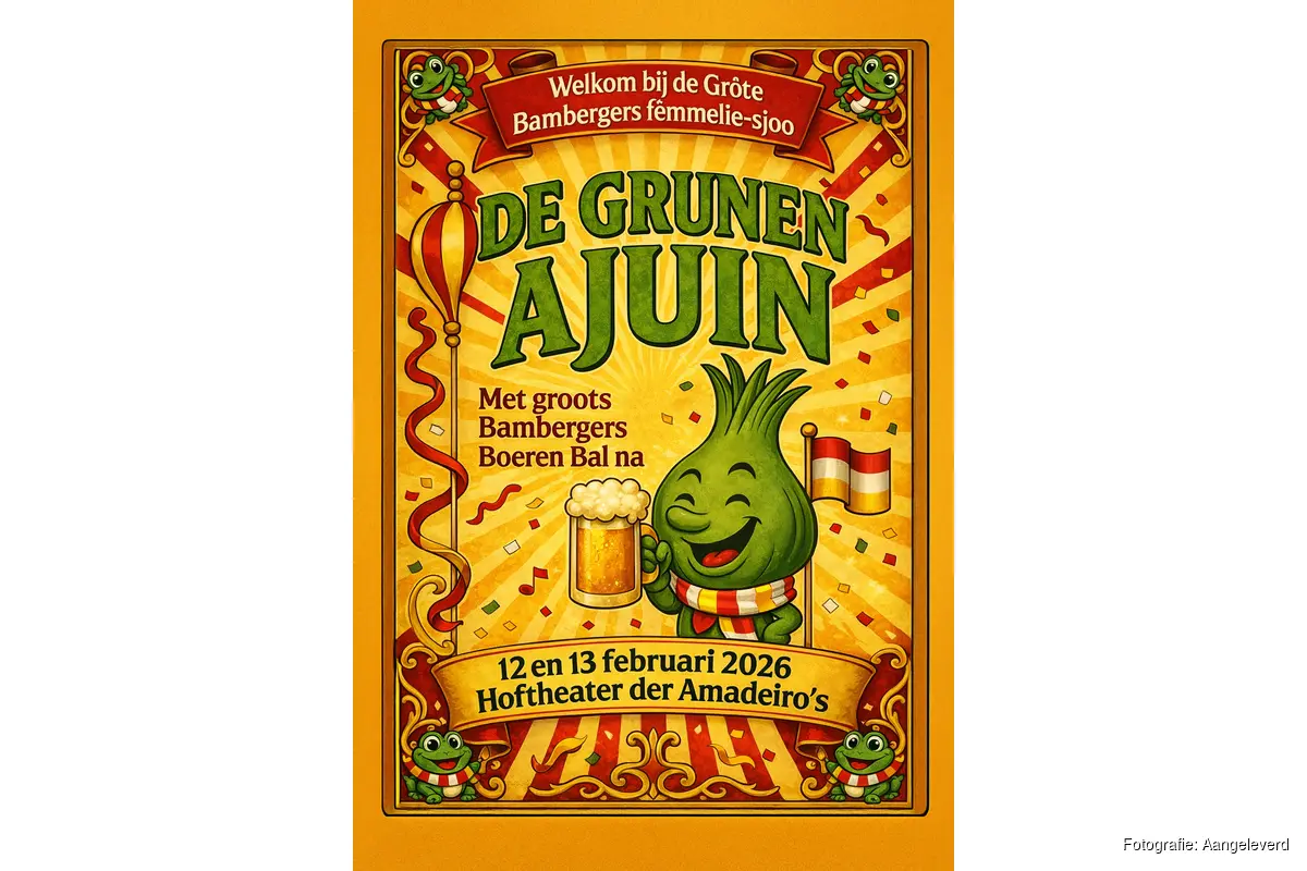 De Grunen Ajuin is te zien op donderdag 12 en vrijdag 13 februari 2026 in het Theater aan de Parade. De belangstelling is groot en een groot deel van de kaarten is inmiddels verkocht. Wie deze carnavalsavond niet wil missen, wordt aangeraden snel te reserveren. Vol is vol.